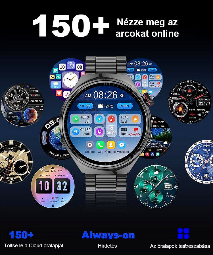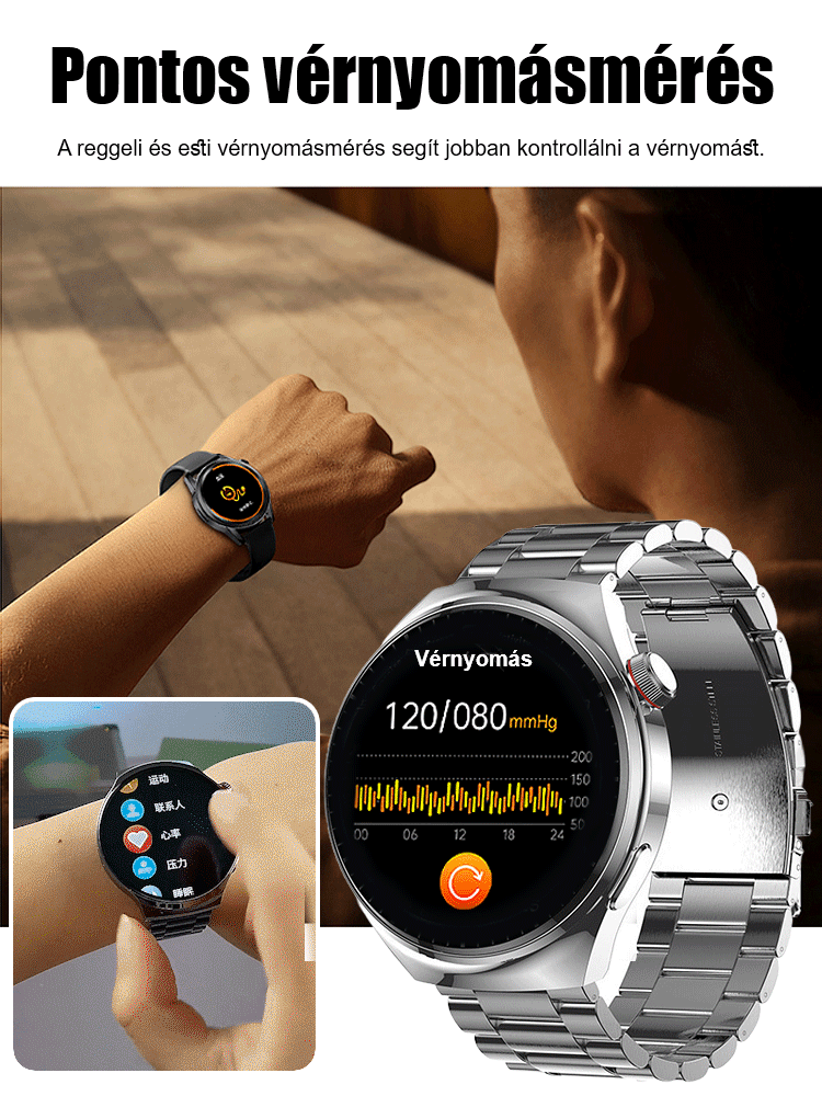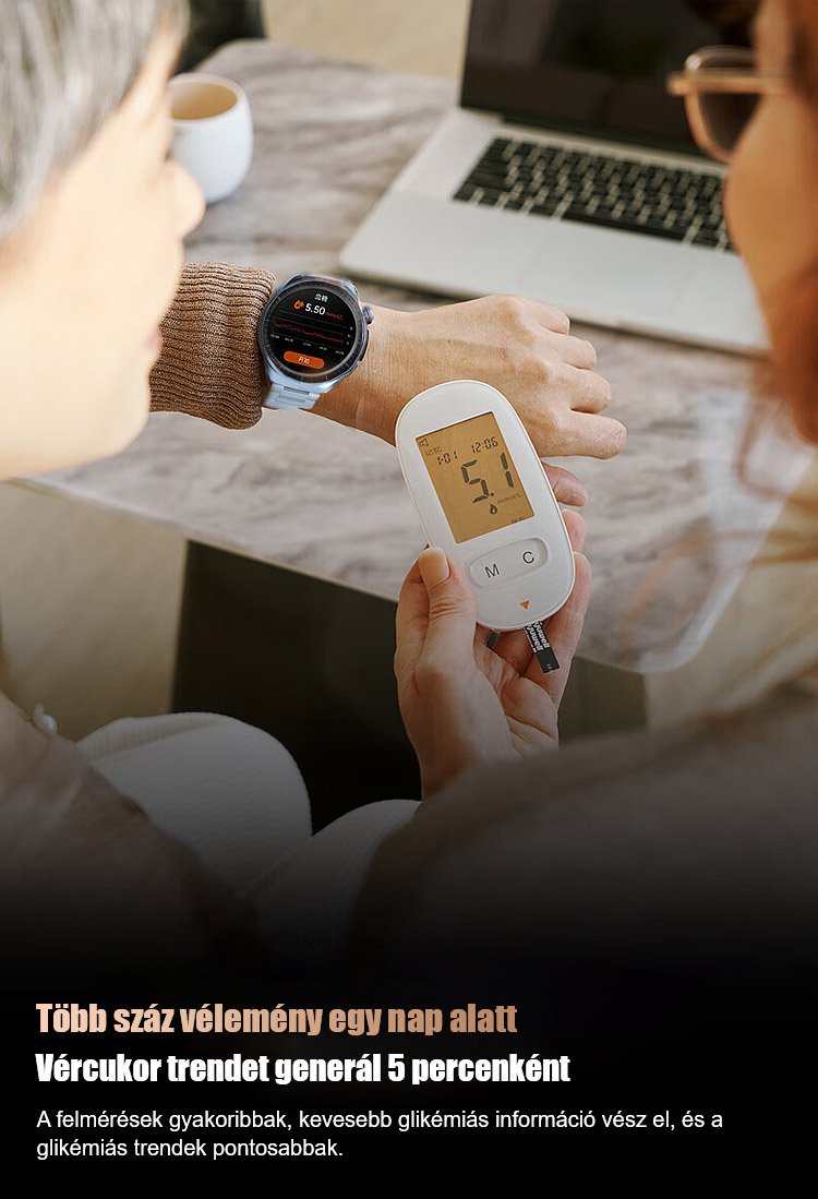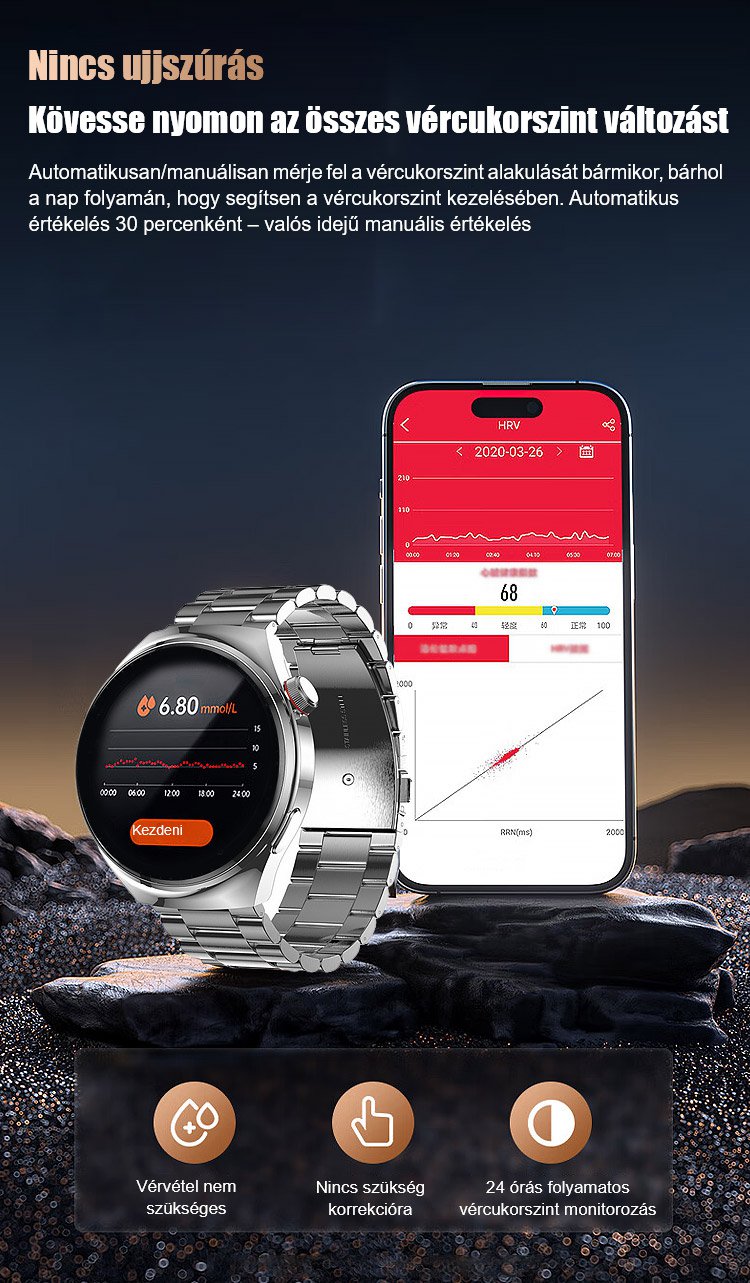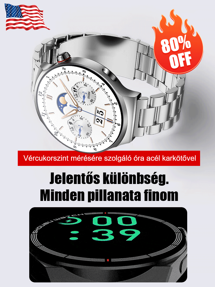 Vércukorszint mérésére szolgáló óra acélszíjjal