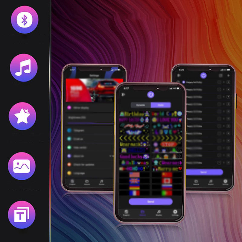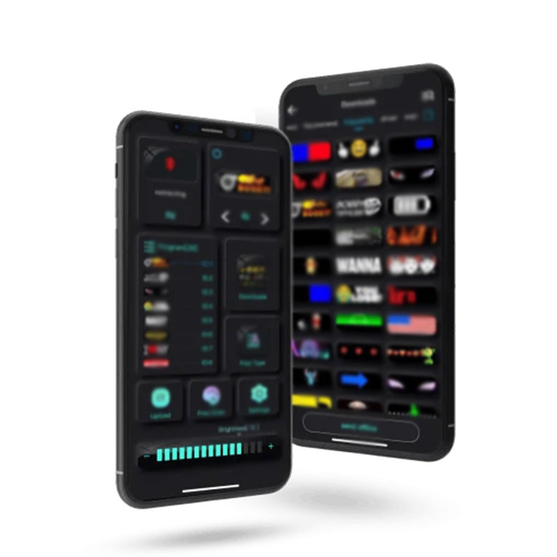 Okostelefonos vezérlés: A szoftver képernyőjének egyszerű vezérlése egy dedikált mobilalkalmazáson keresztül. Válasszon a különböző szemminták közül, vagy készítse el saját barkácsterveit és szöveges animációit, hogy kifejezze egyedi stílusát.