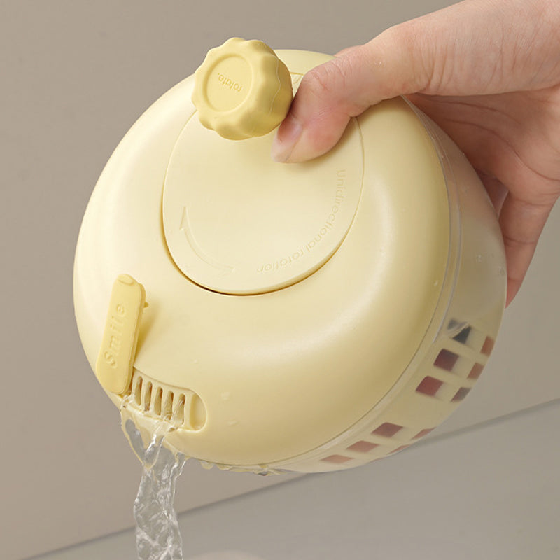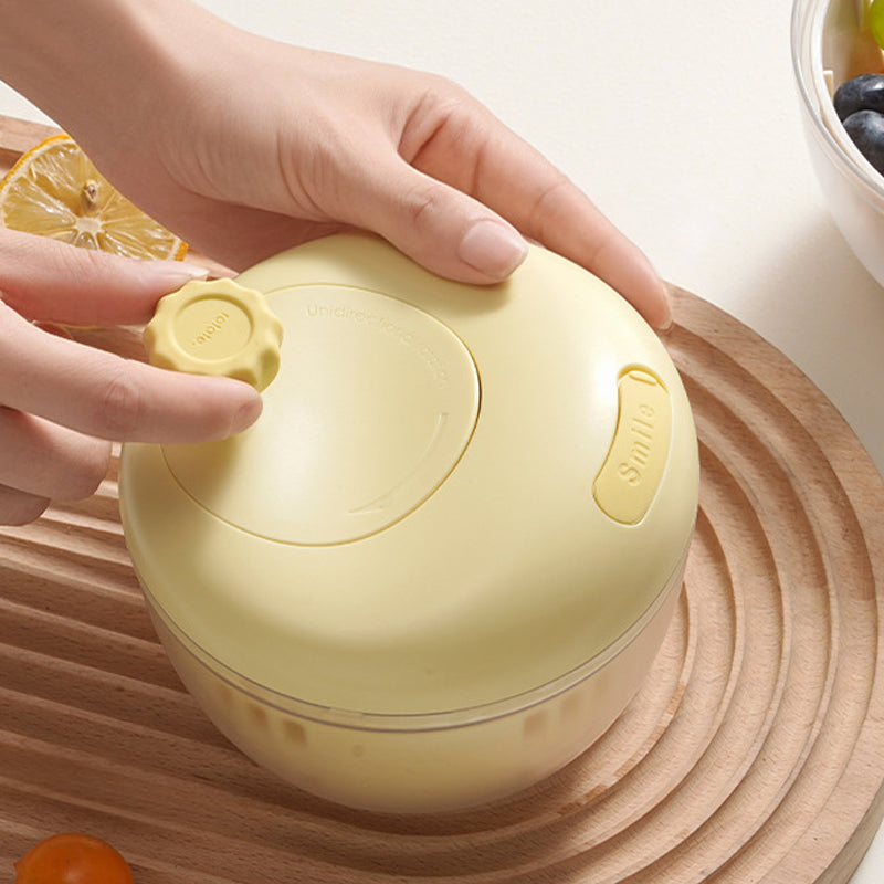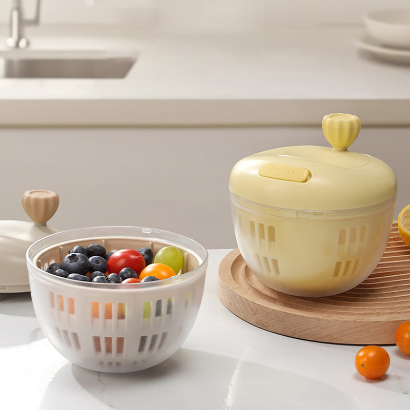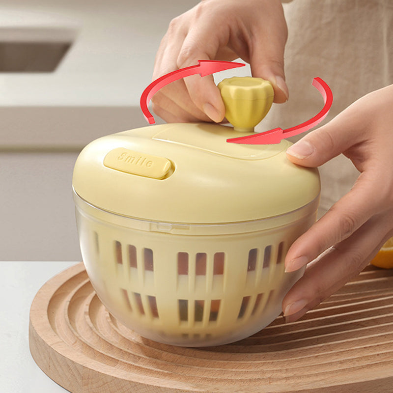 A kézi tekerőkar sima és könnyű 360°-os elforgatást tesz lehetővé. A gyors centrifugálási sebesség gyorsan és alaposan eltávolítja a vizet, így a gyümölcsök és zöldségek tovább frissek és szárazak maradnak.