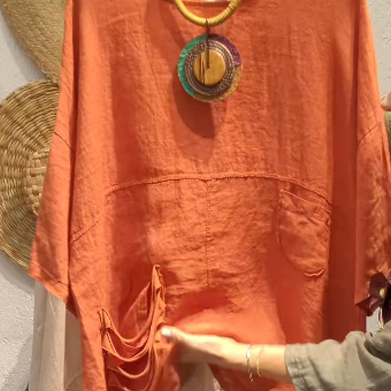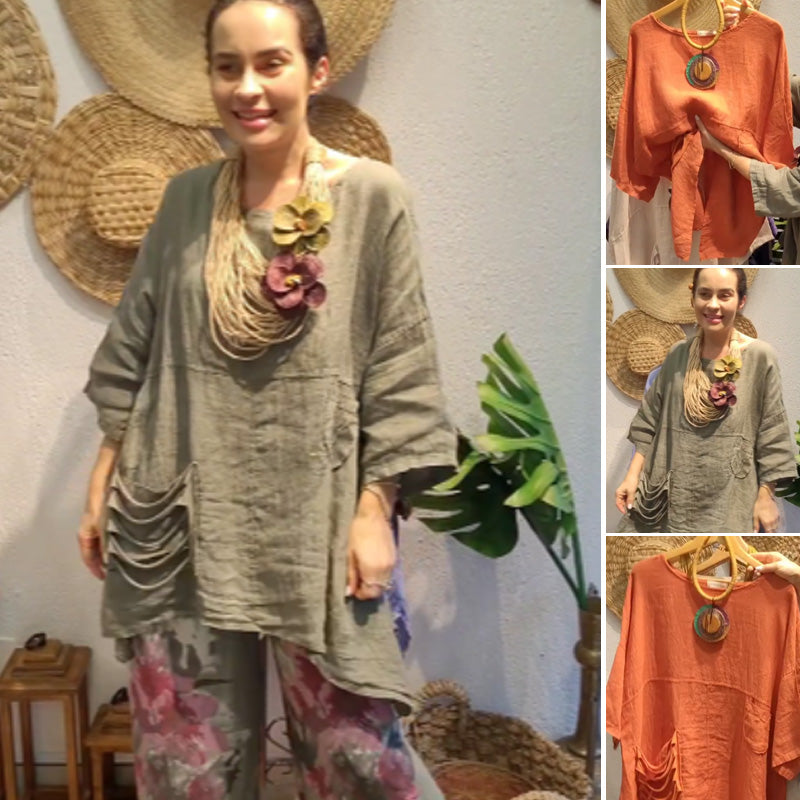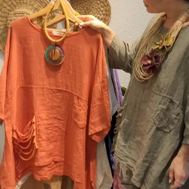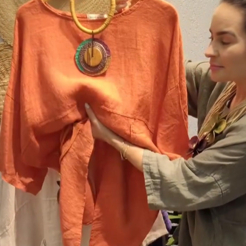 🔹 Természetes lenvászon keverékből készült, ez a légáteresztő felső ideális választás a meleg napokra – puha tapintású, mégis időtálló.