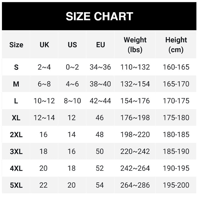 Elérhető méretek: S, M, L, XL, 2XL, 3XL, 4XL, 5XL