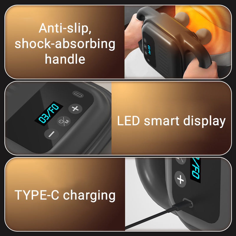 ERĆS NĂGYFEJư KIALAKĂTĂS: ErĆteljes nĂ©gyfejƱ kialakĂtĂĄssal rendelkezik a nagy terĂŒleten törtĂ©nĆ pihenĂ©s Ă©rdekĂ©ben. Ez az erĆteljes kialakĂtĂĄs hatĂ©konyabb izomlazĂtĂĄst biztosĂt azĂĄltal, hogy minden egyes ĂŒtĂ©ssel nagyobb terĂŒletet fed le, jelentĆsen javĂtva a relaxĂĄciĂłt Ă©s a regenerĂĄlĂłdĂĄst.