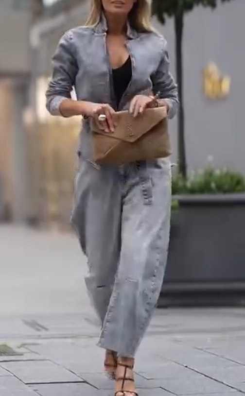 A felső darab egy rövidített farmerdzseki állógallérral, amely letisztult, letisztult megjelenést kölcsönöz. Tartós farmerből készült, letisztult, tartós textúrája megőrzi formáját. Ez a dzseki sokoldalú és számos alkalomra alkalmas. Hétköznapi alkalmakra párosítsd egy egyszerű fekete felsővel, ahogy a képen látható, egy laza, mégis stílusos megjelenésért. Tavasszal és ősszel réteges ruhadarabként is jól mutat, melegséget biztosítva és egy csipetnyi retró és divatos stílust kölcsönözve neki.
