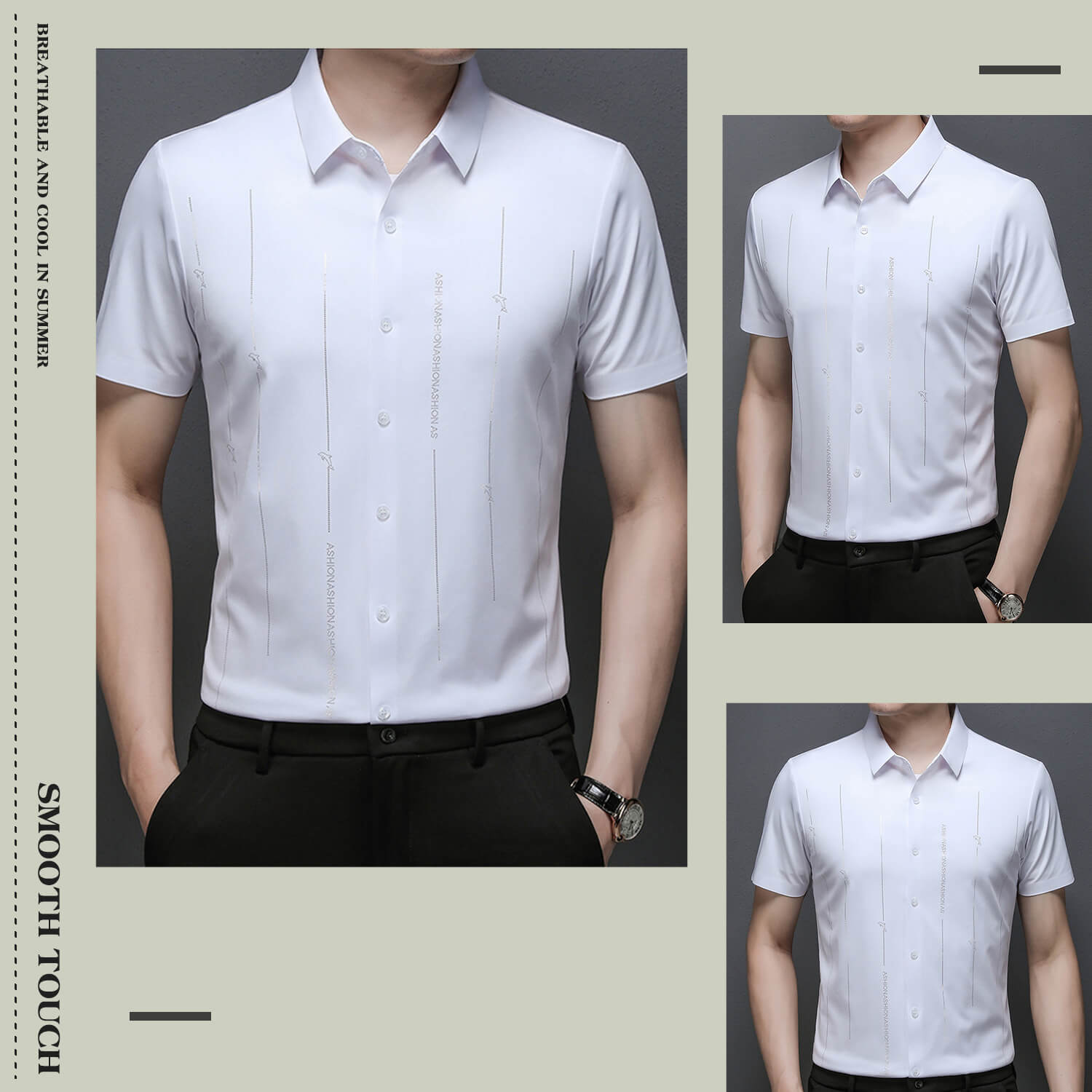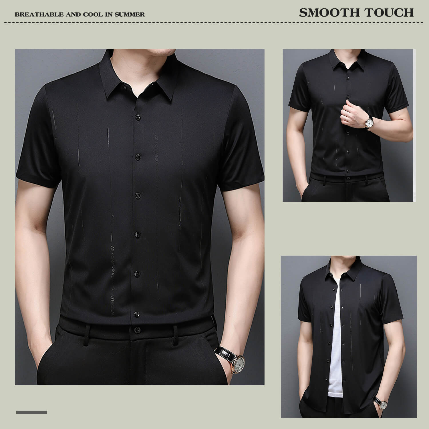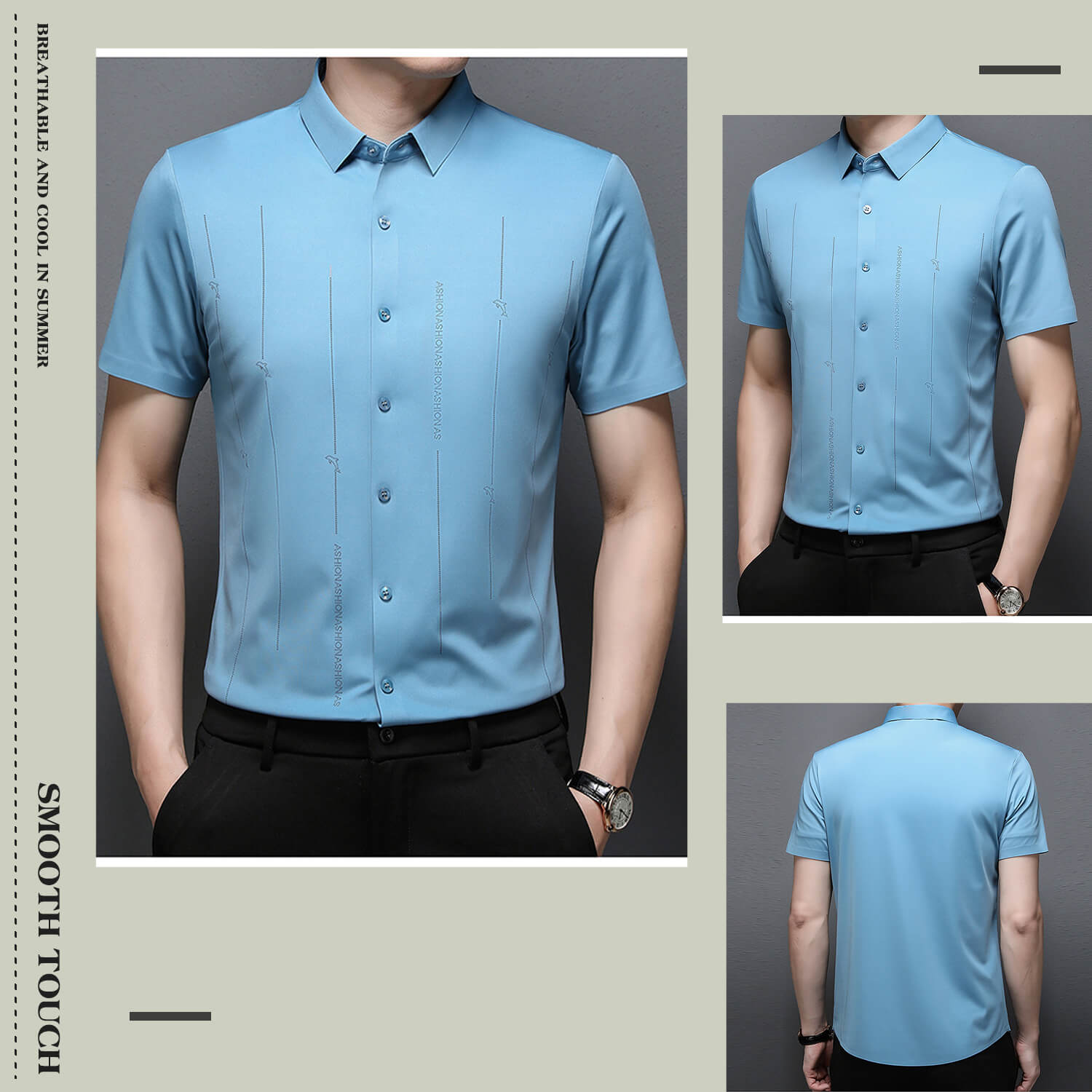 ❄️Férfi gyűrődésálló, nagy nyúlású jégselyem ing
