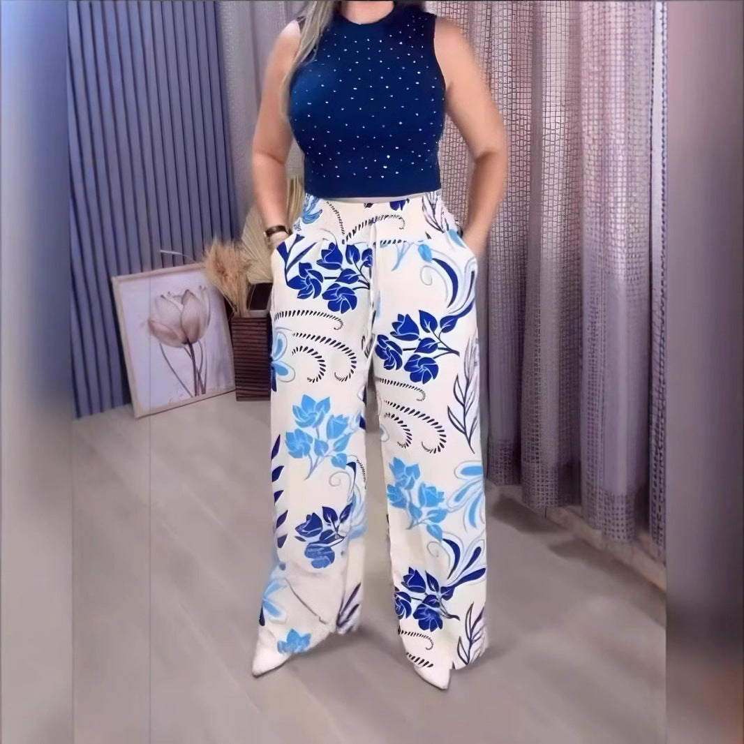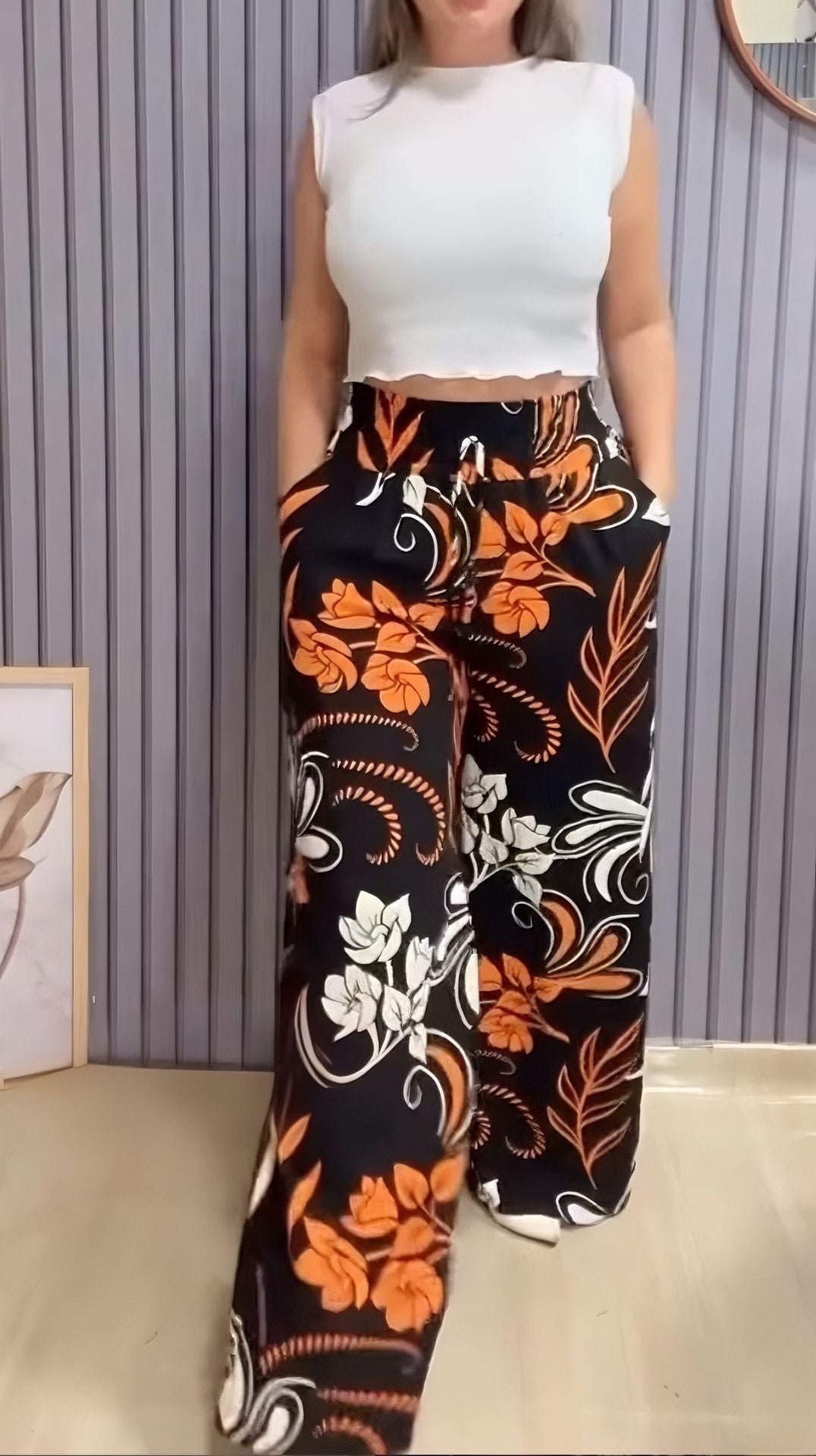 2025 Nyári új, nyomtatott széles szárú nadrágok