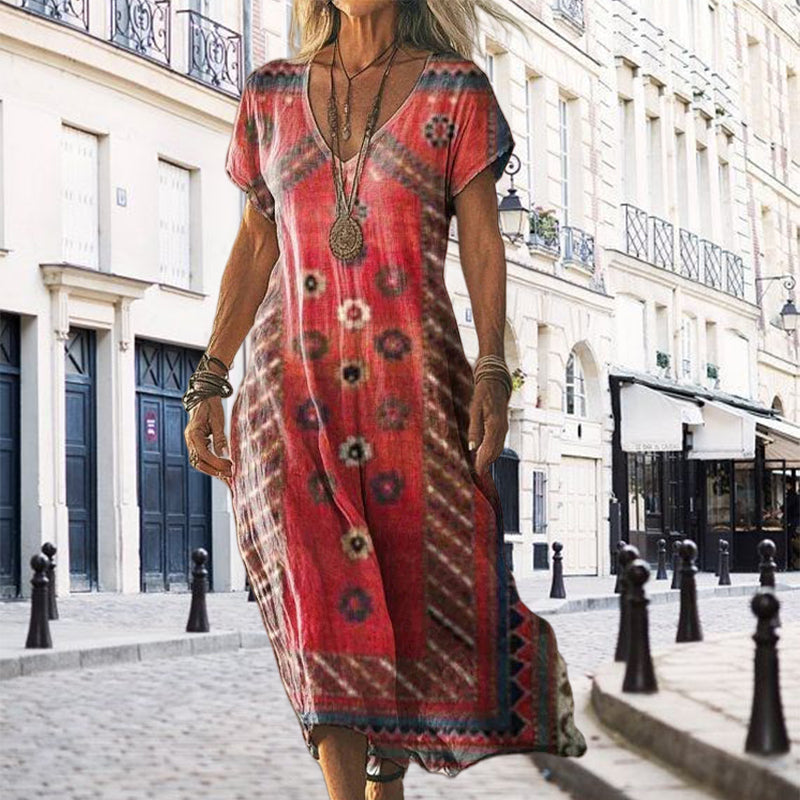 A csomag tartalma: 1 * Női mintás rövid ujjú, V-nyakú hosszú ruha