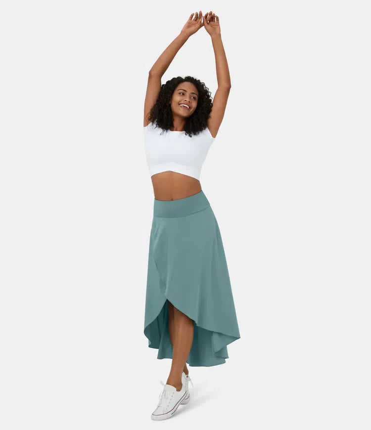2 -ből 1 szoknya Gyors száraz, alkalmi midi, magas derékkal és alacsony fodorral