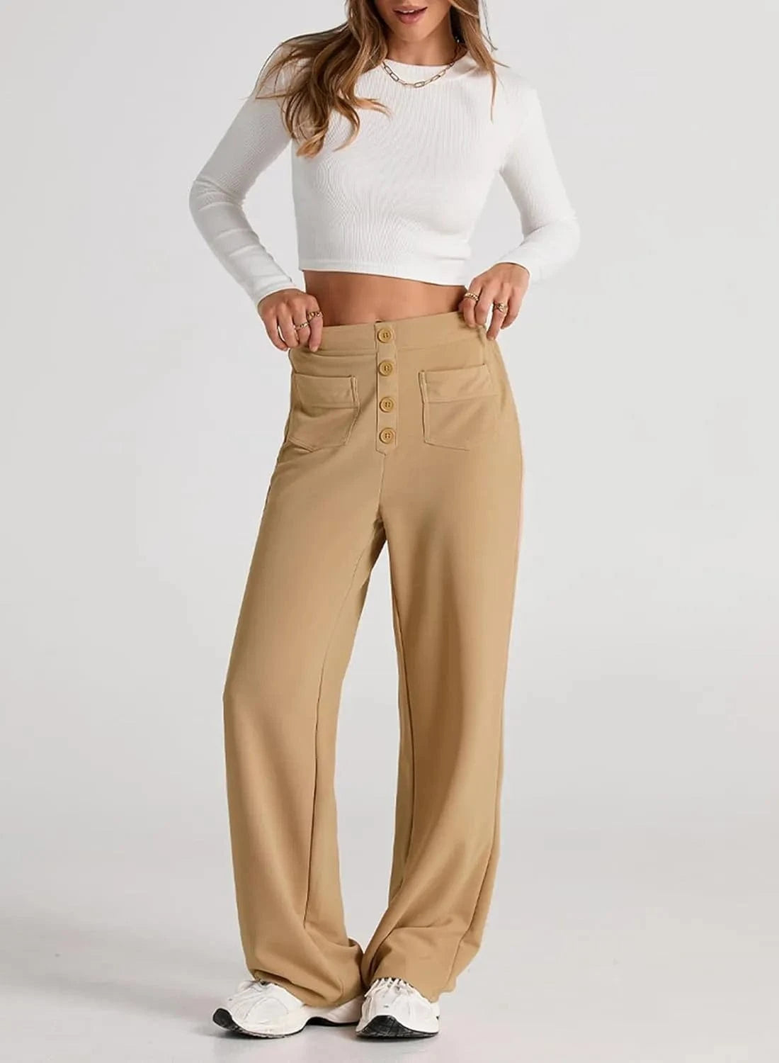♻ Stílusos gombrészletek: Ki mondta, hogy a gomboknak csak működőképesnek kell lenniük? Nadrágunk gyönyörű gombos díszítéssel rendelkezik.