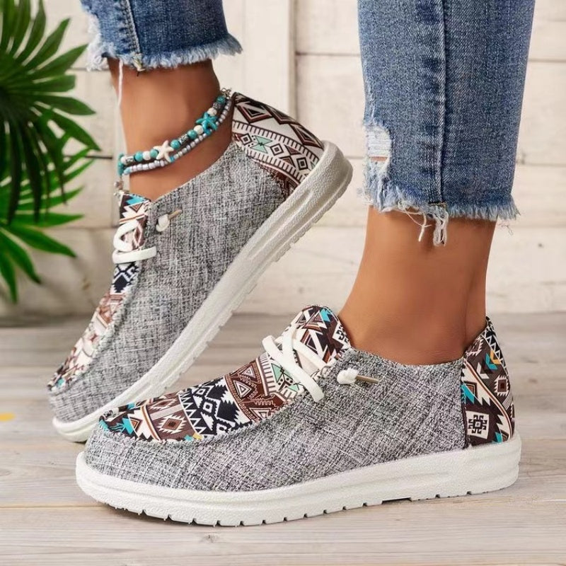 ETNIKUS MINTÁS DÍSZ - Vászoncipőink egyedi etnikai mintákkal rendelkeznek, amelyek élénk színt visznek az öltözékedbe, megmutatva stílusérzékedet, miközben biztosítják, hogy bármilyen tömegben vagy alkalmi környezetben kitűnj.