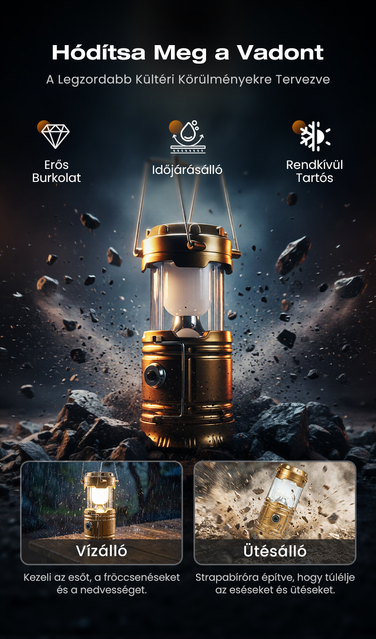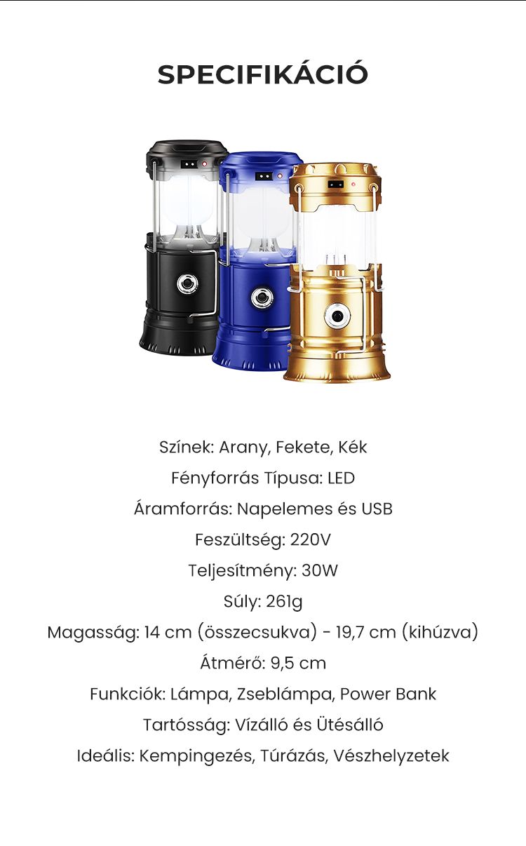 ⛺️Napenergiával működő, behúzható kempinglámpa