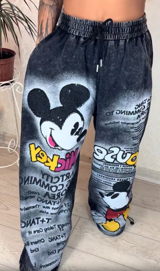 Design: Teljes színű minta rajzfilmgrafikával + mosási folyamat, azonnal feldobja az utcai trendet, a széles szárú változat elrejti a húst és kiemeli a hosszú szárakat, a magas derékrész húzózsinórral különböző derékméretekhez igazodik.