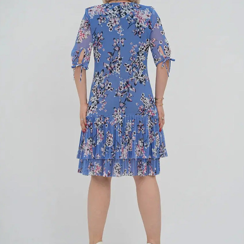 Elegáns, rövid ujjú, rakott hosszú ruha nőknek