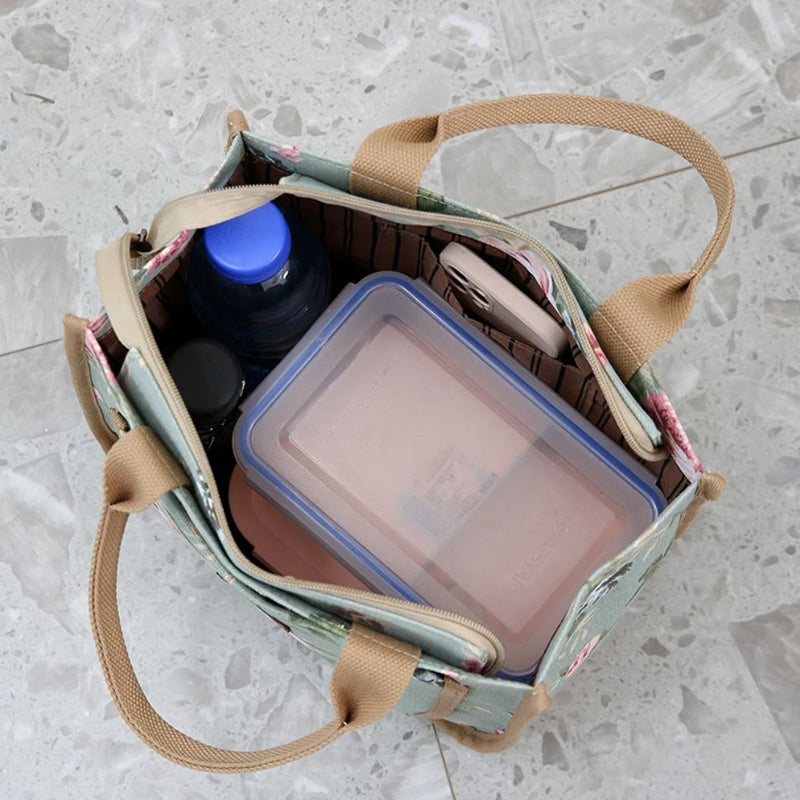 A csomag tartalmazza: A csomagban található a következő termékek: 1 * Virágos nyomtatott ebéd táska