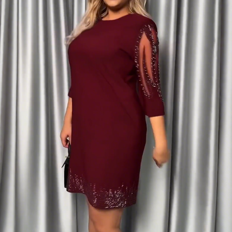 ✨Hétnegyedes ujjú, strasszos csipkével díszített ruha