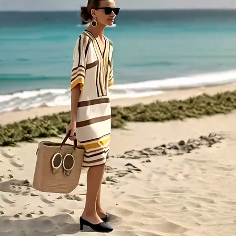 A csomag tartalma: 1 × Női V-nyakú csíkos ruha