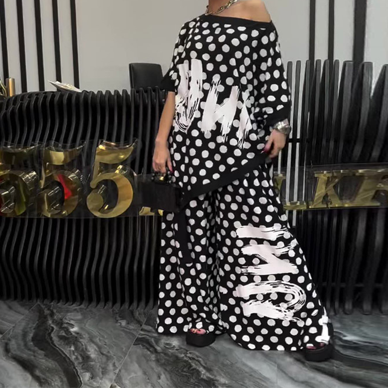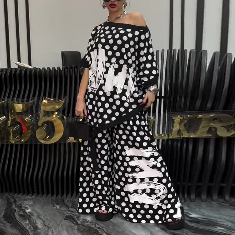 1*Női divatos plus size felső és bő szárú nadrág 2 darabos szett