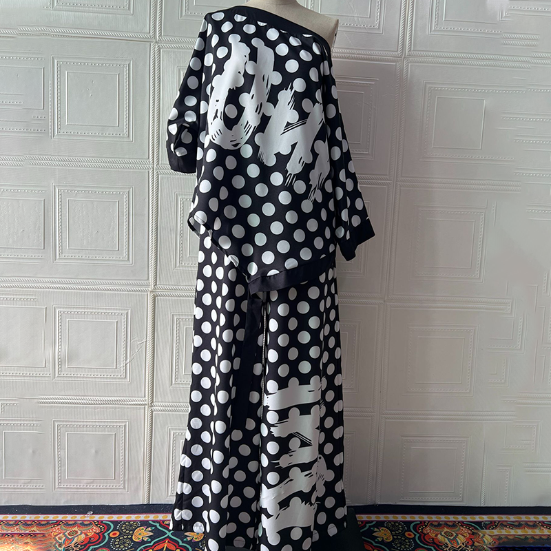 Elegáns és időtlen pöttyös minta: A klasszikus fekete-fehér pöttyös minta azonnal kifinomultságot kölcsönöz.