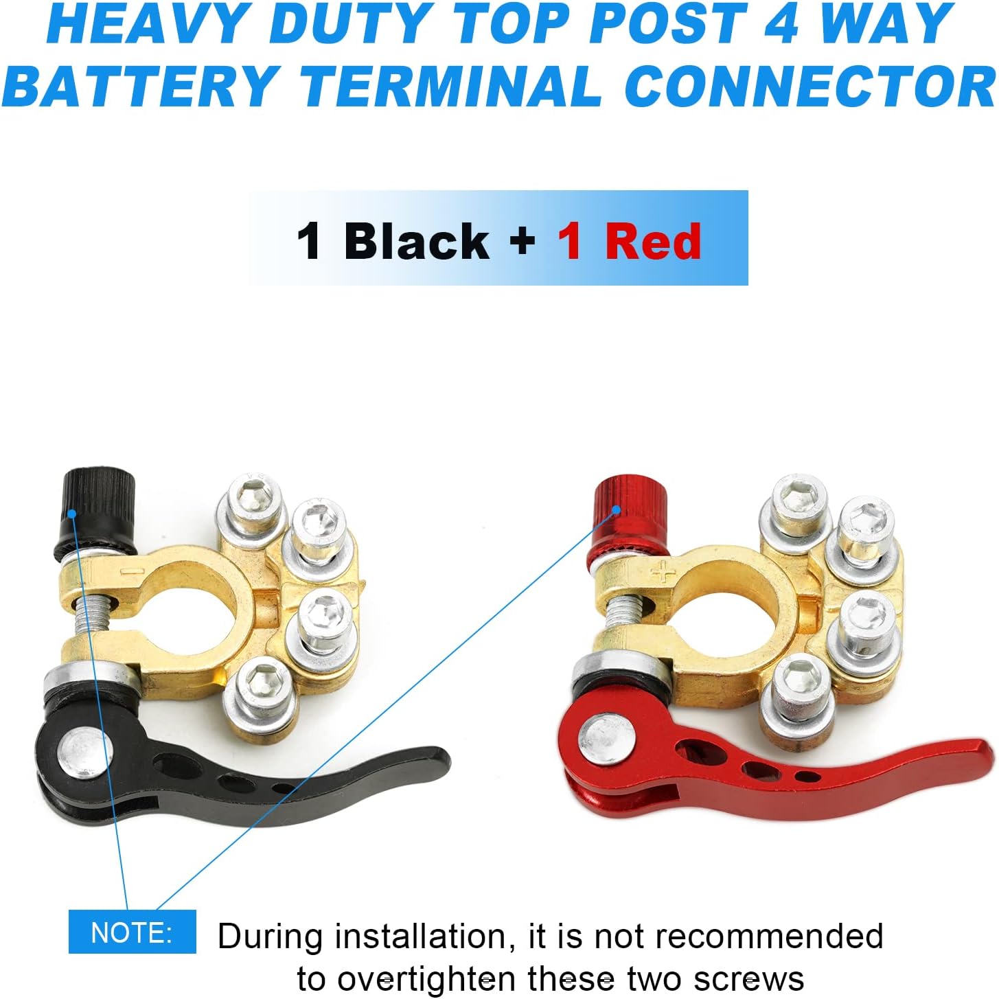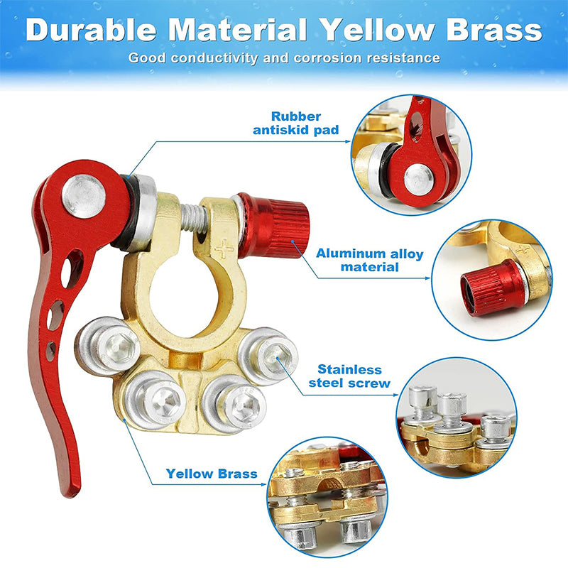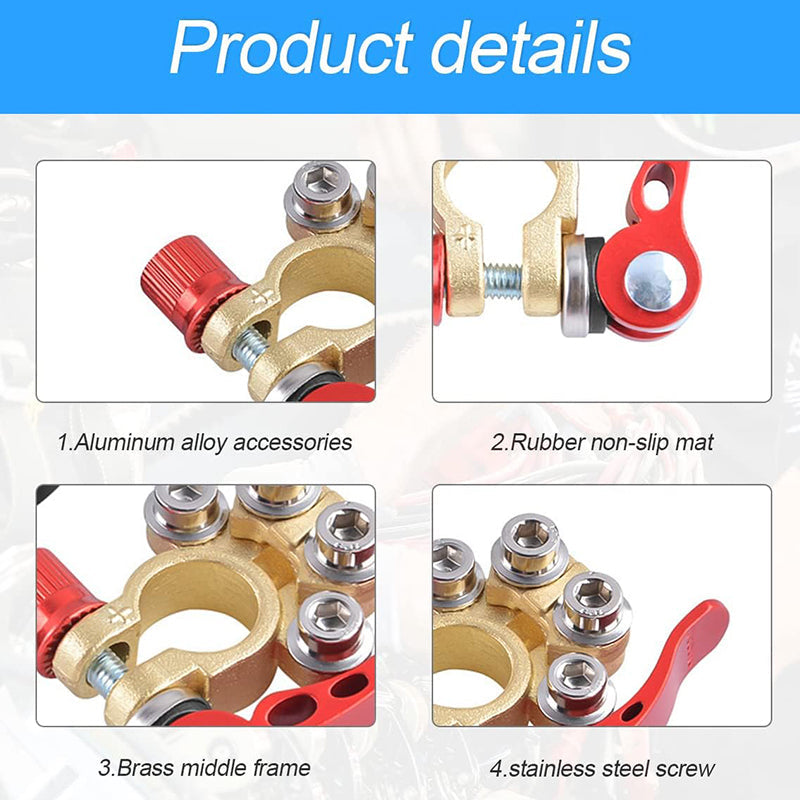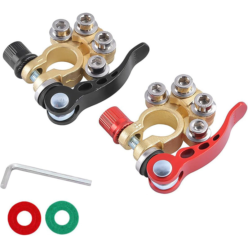 [4 ÚTÚ AKKUMULÁTOR RÖGZÍTŐ] Kiváló minőségű sárgarézből és acélból készült, ellenáll a korróziónak, kiváló elektromos vezetőképességet biztosít, csökkentve a feszültség torzulását és az átviteli veszteségeket. 4 porttal rendelkezik több kábel csatlakoztatásához, így a kábelezés módosítása könnyebb és kényelmesebb.