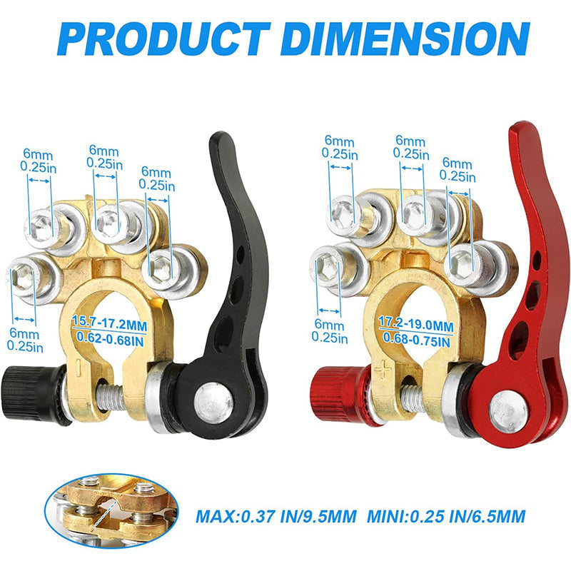 [SZÉLES ALKALMAZÁSI KÖR] Akkumulátorcsatlakozóink kompatibilisek autókkal, kisteherautókkal, lakókocsikkal, tachográfokkal, teherautókkal, pickupokkal, buszokkal stb. SAE/JIS A típusú kerek csatlakozókkal ellátott autóakkumulátorokhoz illeszkednek. Kérjük, győződjön meg arról, hogy a megfelelő csatlakozót a megfelelő polaritással csatlakoztatta.