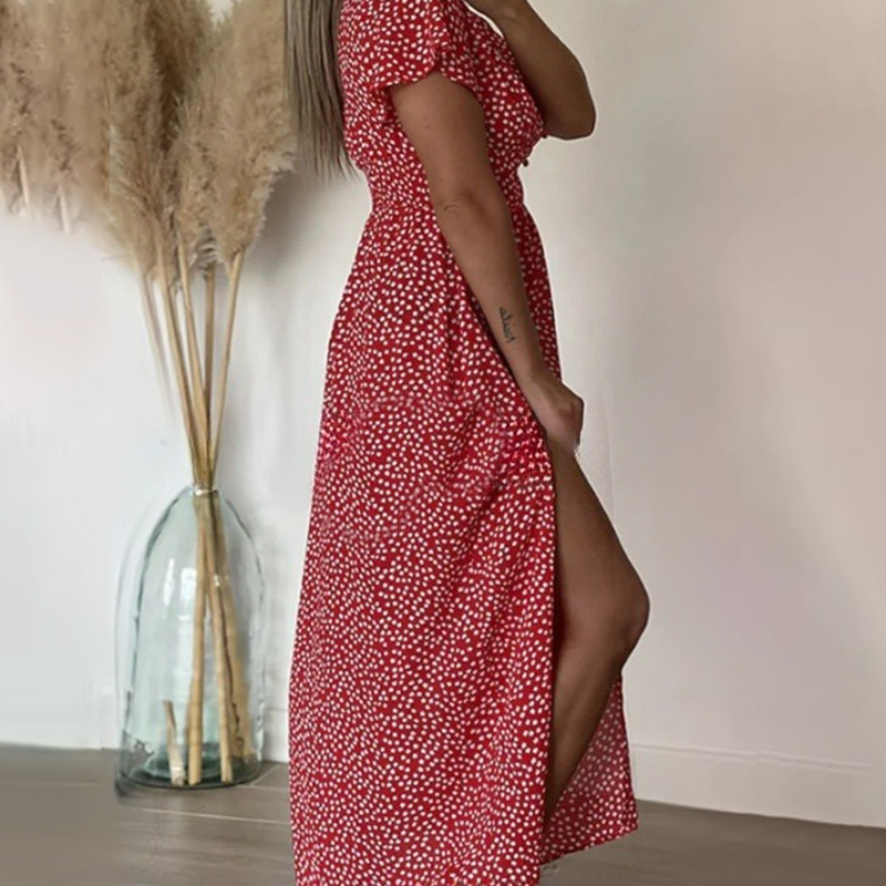 A csomag tartalma: 1 db női szexi, nyomtatott, oldalsó hasítékos maxi ruha