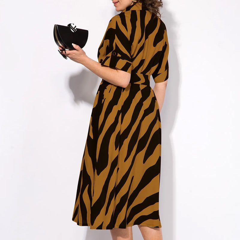 ✨🦓V-nyakú ruha mintás pántokkal és derékkal
